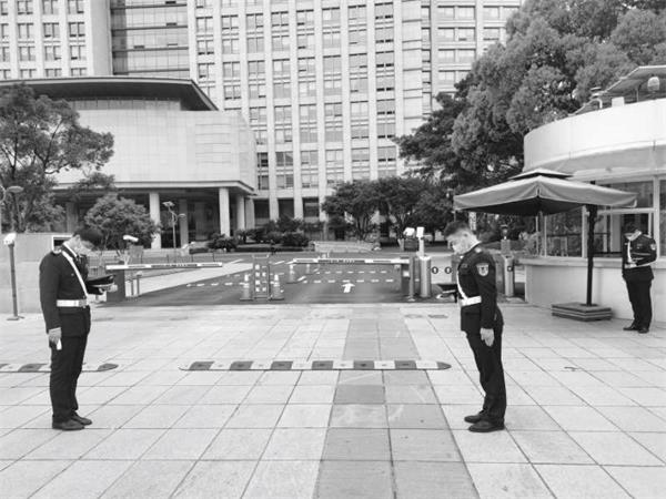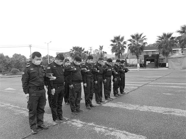 为了深切哀悼抗击新冠肺炎疫情斗争牺牲的烈士同胞,温州保总组织集体默哀。伴随着警鸣声响起,全体队员们神情凝重,在各自的执勤点上,脱帽肃立,垂手默哀三分钟,深切表达哀悼之情。各个执勤现场庄严而肃穆。