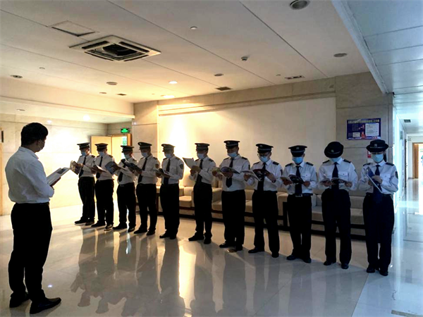 首先开展窗口岗位信访接访培训,培训要求要求全体安保人员要全力做好各项维稳安保工作,时刻保持着高度的警惕性,在注重个人礼节礼貌的基础上,思想上时刻不放松,遇到可疑信访事件不遗漏,不放过,进行信访接访引导工作。并进行非法信访事件紧急处理流程部署演练,演练从常见紧急事件的类型、特点、处理方式入手,结合实操出发,过程中严格要求保安员规范处理流程,明确责任到人,在保障自身安全情况下,第一时间的对非法信访事件进行有效紧急处理,积极劝说信访人员前往信访相关单位并组织引导工作,及时上报大队部与客户单位,对拒不配合寻衅滋事的非法信访人员拨打110报警。 其次开展政治培训学习,为加强队员个人政治思想从而提升信访接访业务水平。在办公室主任周兆松的带领下,大队开展了保安员读书日,设立在每周一中午,利用单位内部午休时间对《中国保安》相关章节进行分析点评,由保安大队队长进行总结内容及注意事项,分析大队接访及日常工作中所遇到类似情况时保安员应如何更妥善的处置。