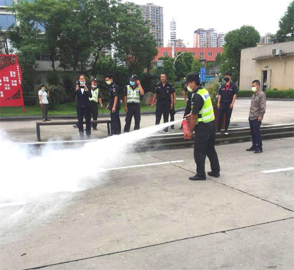 演练活动开始前,温州保总驻市局交管局车管所保安队中队长徐慧敏组织全体保安员就如何开展防火检查、扑救初期火灾,安全事故维稳等进行了集中学习,并向全体保安员讲解了消防安全知识及秩序维护的处理方案,示范了灭火器的种类及用法,并手把手教学。演练过程中,参训保安人员穿戴专业,练习抛水带及消防栓的使用,并利用干粉灭火器对现场小型模拟火点进行灭火,亲身感受在火场应该如何正确使用灭火器。