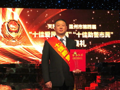 温州市委宣传部、市委政法委员会、市公安局、市总工会、温州日报报业集团、温州广播电视传媒集团等单位联合组织开展的温州市第四届“十佳爱民警察”和“十佳助警市民”活动,于2016年1月12日晚举行了颁奖典礼,市领导黄宝坤、卓高柱、王益琪等出席了颁奖典礼,并为获奖代表颁奖。我公司徐银龙荣获温州市第四届“温州十佳助警市民”提名奖的殊荣,他表示继续努力工作,为辅警力量给予最大的支持,为社会治安作出应有的贡献。 |