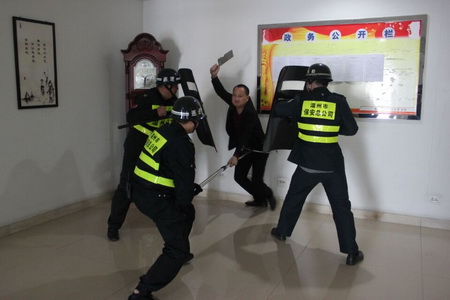 随着国际G20峰会在我省召开,我市反恐防爆形势日趋严重,保安总公司近期高度重视各执勤单位的反恐防爆各项安保工作,同时配备各项反恐防爆装备,并开展对装备的使用培训力度。 我公司为进一步检验派驻龙湾区行政中心保安队反恐防爆应急处突预案的科学性、实用性和可操作性,提高反恐防暴应急处突队伍战斗力,切实提升应对恐怖事件的处置能力,维护区行政中心人员生命财产安全,3月3日,我公司驻龙湾区府保安队开展了反恐防暴应急演练。 当天,应急演练模拟的突发事件是1名歹徒在区行政中心三楼作案。被监控发现,并通知楼层巡逻保安进行核实,在询问过程中,该歹徒持刀并要砍保安。接到巡逻保安请求支援的呼叫后,区府保安队长一声令下,一分钟内10名应急小分队迅速集结、投入战斗,赶到现场迅速将歹徒制服,化解了险情。 演练中,各保安岗协同作战、反应迅速,根据预案设定分工合作,在快速、灵活处置暴恐事件,演练取得圆满成功。应急小分队将定期开展各项处突培训力度,努力达到两个一分钟:一分钟内紧急集合并赶赴现场,一分钟内控制事态。 通过此次演练,进一步加强了区行政中心保安队员的处突能力,使广大保安员加深了对反恐应急预案的熟悉,科学制定了处置流程,提升了区行政中心处置类似暴恐事件的能力,为保障区行政中心人员的生命财产安全打下了坚实基础。 |