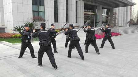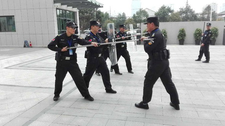 为助力G20峰会安保工作,全面提升我市公安局科技大楼安保服务质量.自2月份以来,我公司驻市局科技大楼保安中队积极开展“备战G20”专项队伍训练,从实战角度出发,采取队长授课和队员实操训练相结合的模式,切实提高保安员处置突发事件的应变能力,增强安全防范意识和防范能力。 |