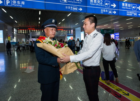 10月19日下午,刚刚荣获 “全国先进保安队员”光荣称号的陈永芬同志从北京载誉归来。当身披鲜红授带、胸戴大红花的陈永芬走出温州动车站时,受到了温州市保安协会秘书长李凛、温州市保安服务总公司林川江总经理及同事们的热烈欢迎。 在10月18日召开的北京人民大会堂隆重举行的第四届全国先进保安服务公司、优秀保安员表彰大会上,温州市保安服务总公司保安员陈永芬从全国400多万名保安队员中脱颖而出,被评为“全国先进保安员”,并得到了中共中央政治局委员、中央政法委书记孟建柱会见。 林川江总经理勉励陈永芬要倍加珍惜荣誉,在工作中更加严格要求自己,做好模范,带好头,发挥先进典型的标杆表率和示范引领作用,为公司的发展作出新的更大的贡献。 |