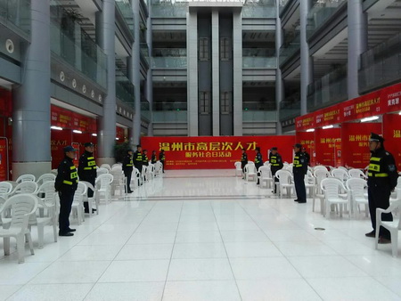 12月18日上午,温州市高层次人才联谊会服务社会日活动在温州科技馆举行,医疗卫生、教育、法律、农产品、汽车保养、科普宣传、珠宝鉴定等领域的19位专家为市民提供义诊、咨询服务。高层次人才服务社会日活动由市委组织部、市委人才工作领导小组办公室、市高层次人才联谊会主办,市科协、温州科技馆协办。自市高层次人才联谊会成立以来,已举办7次此类活动,为普通市民和农村群众提供高层次高水平的专家义诊及法律、安全等生活知识技能服务,受惠群众已逾6000人次。 为确保此次的安保工作顺利进行,总公司抽调精干保安队员参与现场安全保卫工作,活动期间,队员们以一人一窗口的形式维护现场秩序,引导市民有序咨询,现场还成立机动小组加强巡逻力度,有效地维持了活动现场安全秩序,队员们尽心尽责的工作态度受到市民及组委会的一致好评。 |