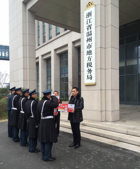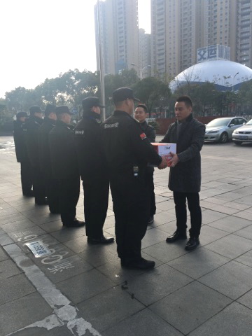 春节期间,林川江总经理、蔡专副总经理带领总公司相关部门负责人分赴市府、市公安局、市财政局、龙湾区府、市交警支队等单位对坚守岗位的保安队员进行春节慰问,并致以节日的问候和祝福,对队员们一年来付出的艰辛和努力表示感谢,同时叮嘱他们安排好节日值班,做好春节期间客户单位的安保工作。 每到一处,公司领导都亲自向一线保安员送上慰问品,与坚守岗位的队员们亲切握手,并致以新春的问候,祝福春节快乐、身体健康、阖家幸福!勉励大家在新的一年里勤奋工作,敬业奉献,为保安工作再上新台阶作出更大的贡献! 队员们纷纷表示,“感谢领导的关怀,我们一定会立足本职岗位,尽职尽责,站好每一班岗,圆满完成春节期间的安保工作,让全市人民过上一个祥和、安全的春节。”