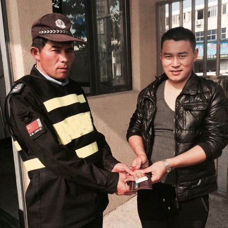 2月20日14时许,总公司车管所保安员张红山在日常巡逻时捡到一个男式钱包,内有身份证、若干现金、数张银行卡及重要证件。在原地等候多时仍未见到失主来寻找钱包,考虑到钱包内有重要证件和银行卡,失主丢失后会十分焦急,张红山将钱包上交给车管所,通过证件信息联系到了失主胡先生。 原来胡先生是一名在温州开出租车的司机,当天到车管所咨询有关业务时不慎将钱包丢失在大院内。胡先生在领取钱包时得知是由保安员张红山拾到并上交的,找到张红山后感谢他捡到钱包并上交的行为,并拿出现金想表达感谢之意,但是被张红山婉言谢绝,表示这是自己的工作职责,胡先生连声称赞他品德高尚。 |