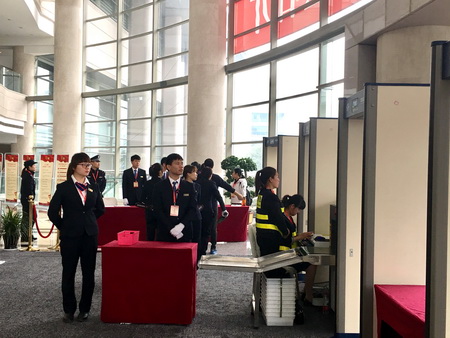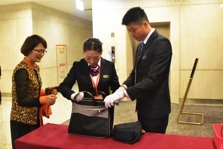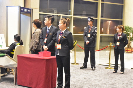 2017年4月17日至4月21日,温州市第十三届人民代表大会第一次会议、政协十一届温州市委员会第一次会议在市人民大会堂隆重召开。为确保一年一度的盛会顺利进行,温州市保安服务总公司根据市公安局有关部门的指示,在公司领导的带领下,成立了首支专业保安安检队,这也是我市首支专业保安安检队伍。经市公安局特警支队的专业安检培训,正式于本次“两会”亮相。会议期间,安检人员高度重视、严谨对待、认真值守、严格规范,以零投诉、零失误的傲人成绩,圆满完成“两 会”的安检任务。 提前部署 确保安全 为高质量、高要求做好会议期间的各项安检保障服务工作,总公司紧紧围绕“绝对安全、万无一失”的工作目标,精心制订安检工作方案,专门选派业务能力强的安检人员进行培训。并于会前多次实地察看,明确岗位职责、严格责任落实、细化目标分工,科学制定应对突发事件的防范处置方案。总公司林川江总经理、蔡专副总经理亲临各个现场,对安保工作进行检查和指导,要求各位安检人员要以高度的责任感、饱满的工作热情和严谨的工作作风投入到安检工作中去。 真情服务 细致入微 根据现场实际情况,针对会议期间进出人员众多,总公司提前将待检区隔离设计,有效规划安检通道标志标识。安检期间,队员们安全检查严谨规范、物品摆放轻拿轻放,同时对开启箱包检查实时监测,与安检系统相关联进行实时监控,确保物品与主人不错拿,保证物品图像回查有根据,切实发挥细致入微,真情服务的态度。队员们笔挺的站姿,亲切的微笑,快捷的动作,在人流中显得格外“亮眼”,成为“两会”上一道靓丽的风景线。 严格检查 各司其职 “两会”期间,全体安检人员克服此次安保工作等级高、任务重、时间长等因素,始终以饱满的精神风貌和一丝不苟的工作作风坚守岗位,做到服从命令、听从指挥、文明执勤、规范操作,发扬不怕苦、不怕累的精神,以过硬的专业技能、顽强的工作作风,加班加点及时完成安检工作,圆满完成了2017年温州市“两会”的安检工作。同时在4月18日,安检组南门队员高度负责,处置恰当,及时拦截了2名信访人员,有力保障了会议的顺利进行。参与“两会”安保任务的全体人员,充分展现了总公司保安队伍的良好风采,得到了各级领导及与会代表的一致好评。