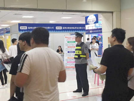 6月17日,由市人力社保局主办,市人才市场管理办公室、市人才市场承办的2017年温州夏季人才交流大会将在温州人才市场二楼、三楼举办。大会共吸引了374家企业入驻招聘,提供6000余个岗位,有3000余名市内外各类专业技术、管理、营销人才、实用型人才、应届高校毕业生进场择业洽谈,现场达成招聘意向700余人。 由于人才交流会属人员密集型大型集会,安保工作是大会的重中之重,总公司为确保安保工作万无一失,研究制定了周密的大会突发事件应急预案,按照"定人员、定任务、定责任"的工作要求,详细制定活动方案,进一步细化岗位职责、逐岗落实到人、明确工作任务,确保各项工作平稳、有序进行。全体队员恪尽职守,文明执勤,圆满完成了会场安全检查、门口守护、秩序维护等工作。 |