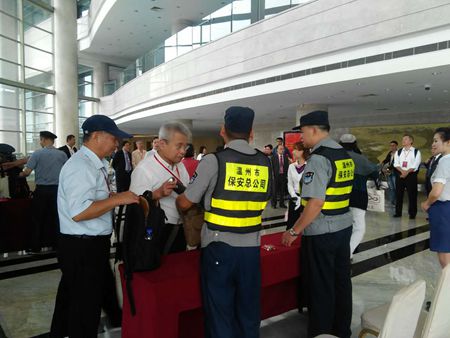 2017浙江·台湾合作周暨第四届海峡两岸(温州)民营经济创新发展论坛于9月21日至9月24日在温州大会堂举行。此次活动由国台办、省政府共同主办,论坛主题是“创享,让城市更美好”,整个活动由海峡两岸民营经济创新发展论坛、青年创新创业季、产业合作对接会、对台合作特色平台考察活动等“1+12”框架内容组成,突出产业对接、创业创新以及市、县多点联动。 温州市保安服务总公司负责此次会议的安检工作,由于此次会议级别高、参会人员多,又临近十九大召开之际,公司领导十分重视,抽调精干安检人员和保安员负责此次会议的安检工作,秉承“安全零差错”的原则,务必做到无一人漏查,无一例错查,一丝不苟的对与会人员进行安检,确保了会议的安全。执勤几小时下来,腰酸背痛,但没有人叫一声苦,喊一声累,齐心协力,服从命令,听从指挥,全力以赴,尽职尽责,充分体现了良好的执行力和恪尽职守,爱岗敬业的高尚精神,受到了领导的一致好评。 |