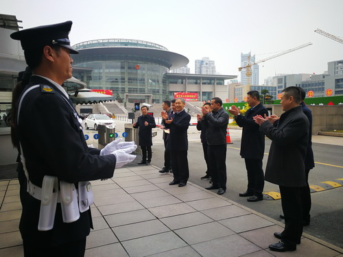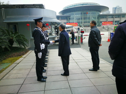 新春佳节来临之际,温州市殷志军副市长在机关事务管理局陈向东局长、刘立锋副局长等人的陪同下来到温州市保安服务总公司驻市行政中心保安大队,亲切慰问了立足一线坚守岗位的保安员,为他们送去了新春的关怀和祝福。 每到一个执勤点,殷志军副市长与队员们一一握手,询问了解他们的工作及生活情况,并感谢大家一年来付出的辛勤劳动。他表示,过去一年机关后勤安保服务人员尽职尽责,坚守岗位,有力地保障了机关正常有序运行,得到了机关干部职工的认可和肯定。他代表市委、市政府向坚守在工作岗位的全体后勤安保服务人员表示衷心的感谢,同时,勉励大家在新的一年里再接再厉、努力工作,创造新佳绩、再上新台阶。 |