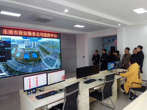 考察中 2月22日,考察组一行先后来到乐清市保安服务公司与龙湾保安公司,他们对考察组的到来表示热烈的欢迎。 在乐清市保安公司黄云华总经理等人的陪同下,考察组参观了其公司的监控中心、公司展厅,初步了解了公司技术创新、发展历程及荣誉资质,还通过播放宣传片的方式了解其公司各部门设置、内部管理、队伍建设、技防运营、人才梯队建设以及下一步工作计划。