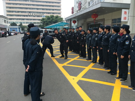 为进一步加强医院安全保卫管理与安全防范措施,提升医院安保人员业务技能,增强预防和处置突发事件的能力,总公司驻平阳县人民医院保安中队每月定期组织开展安全防范培训,着力围绕应知应会、基本防卫、安全防范等方面予以加强,旨在培养一支战斗力强、作风正派、适应形势的医院保安队伍。。 保安中队针对医院出入口、停车场、门(急)诊、住院部、候诊和缴费等人员活动最为密集的场所,除加强日常巡查力度外,还结合医院实际情况,建立应急处置机制和预案,规范门卫值守巡查管理制度,严格各出入口的管理,加强对进出人员、车辆的检查,发现可疑人员、可疑物品进行先期处置,防止恶性突发事件发生。 同时对重点岗位和新进员工加大培训力度,全面提高保安员综合素质和业务技能,切实为各项业务安全运营提供保障。实战培训中,队员们以互动的形式对防卫技能、列队训练、徒手控制以及警棍、钢叉、盾牌的使用技巧等技能进行了系统的学习。 通过培训,提高了保安人员的安全保卫责任心,增强了业务技能及应对突发事件的反应能力,为深化平阳医院维稳工作打下了坚实的基础。