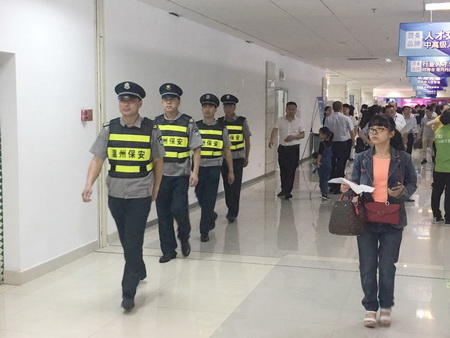 6月17日,由市人力社保局主办,市人才市场管理办公室、市人才市场承办的2017年温州夏季人才交流大会将在温州人才市场二楼、三楼举办。大会共吸引了374家企业入驻招聘,提供6000余个岗位,有3000余名市内外各类专业技术、管理、营销人才、实用型人才、应届高校毕业生进场择业洽谈,现场达成招聘意向700余人。 由于人才交流会属人员密集型大型集会,安保工作是大会的重中之重,总公司为确保安保工作万无一失,研究制定了周密的大会突发事件应急预案,按照"定人员、定任务、定责任"的工作要求,详细制定活动方案,进一步细化岗位职责、逐岗落实到人、明确工作任务,确保各项工作平稳、有序进行。全体队员恪尽职守,文明执勤,圆满完成了会场安全检查、门口守护、秩序维护等工作。 |